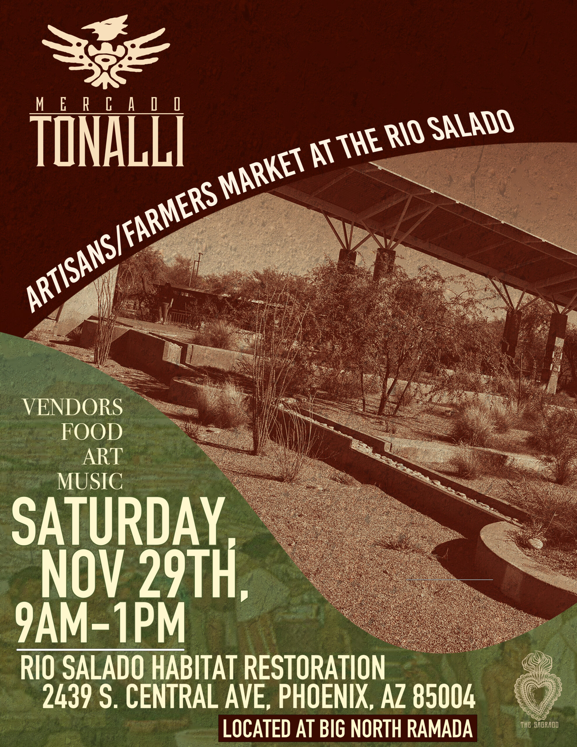 Join us for Mercado TONALLI at the Rio Salado on South Central Ave, Saturday, Nov 29th, from 9 am to 1 pm!